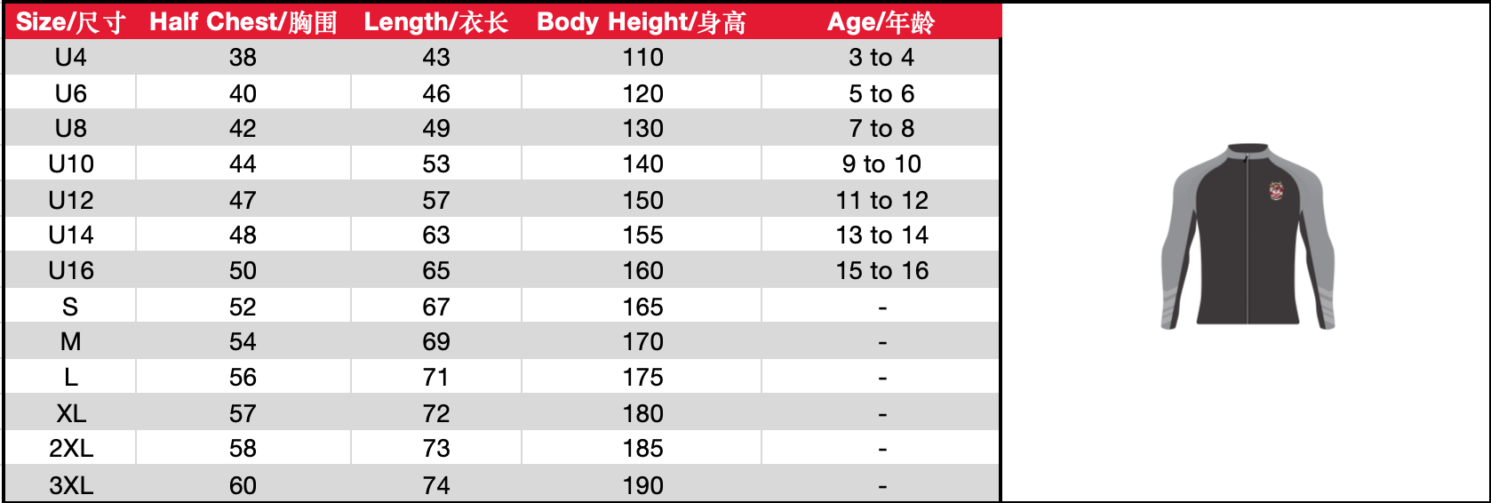 | Size | KS(U4) or KM(U6) or KL(U8) or JS(U10) or JM(U12) or JL(U14) or XS(U16) or S or M or L or XL or 2XL or 3XL |