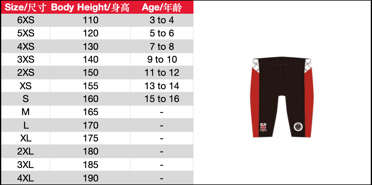 | Size | 6XS or 5XS or 4XS or 3XS or 2XS or XS or S or M or L or XL or 2XL or 3XL or 4XL |