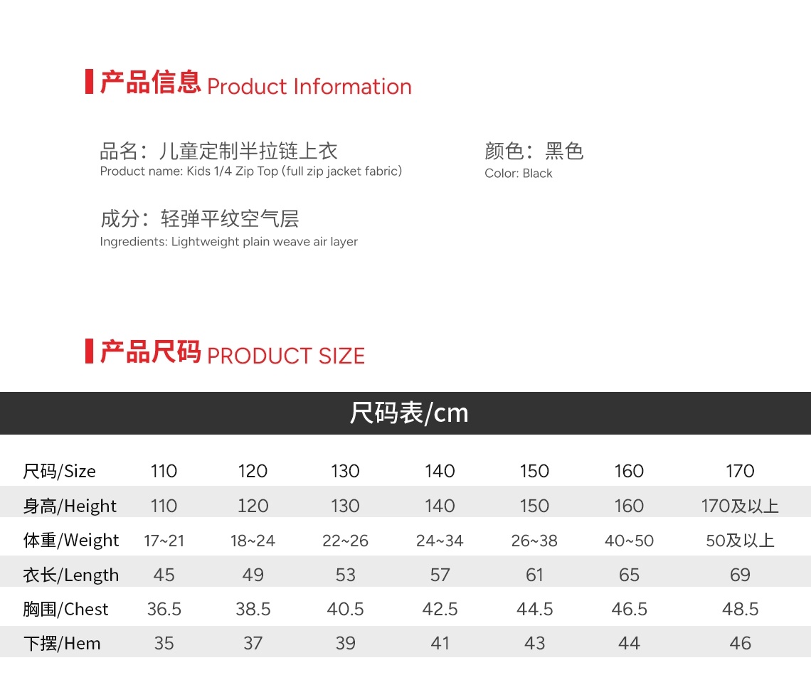 Kids 1/4 Zip Top (full zip jacket fabric)