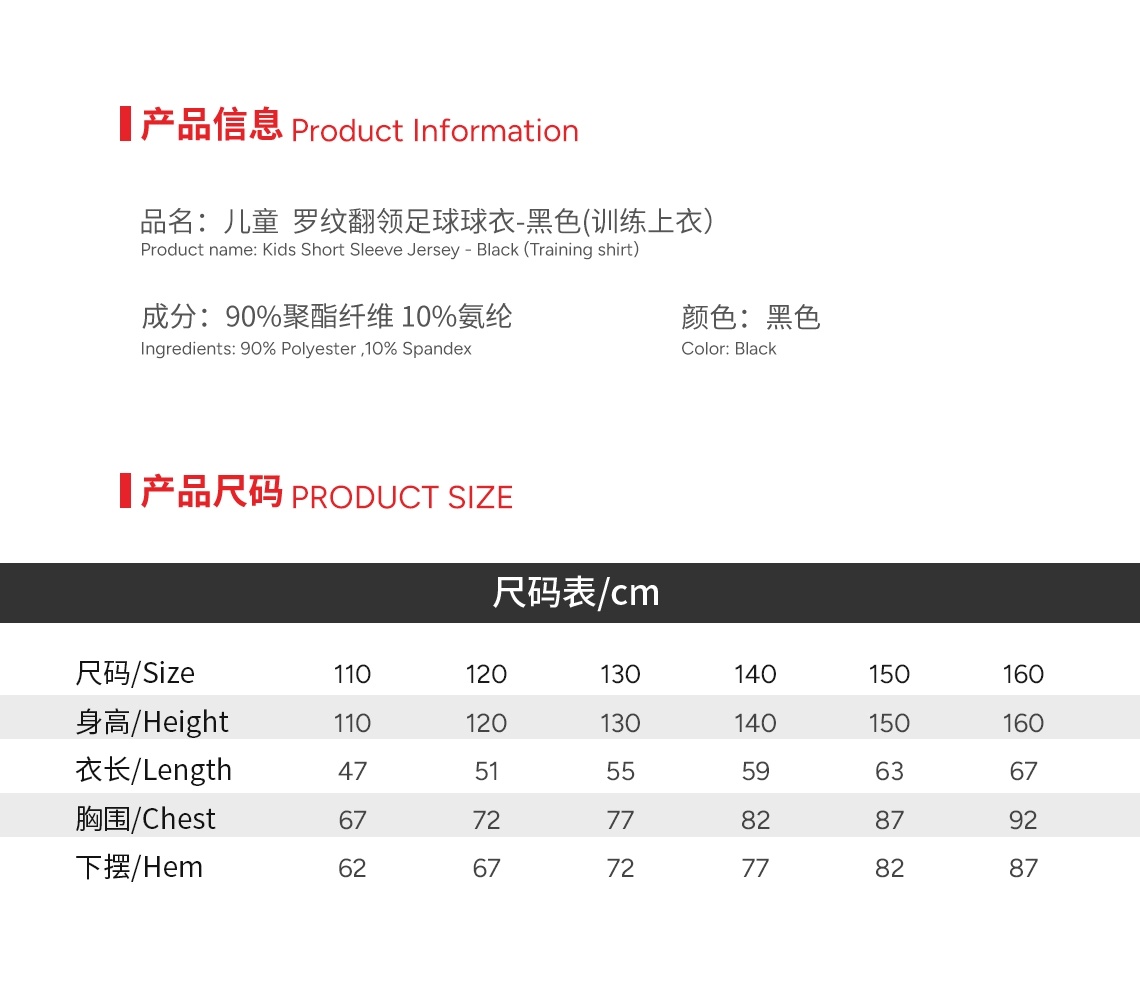 Kids Short Sleeve Jersey - Black (Training shirt)