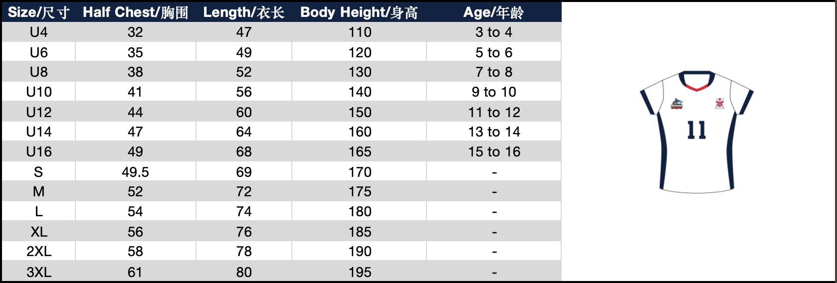 | Size | KS(U4) or KM(U6) or KL(U8) or JS(U10) or JM(U12) or JL(U14) or XS(U16) or S or M or L or XL or 2XL or 3XL |